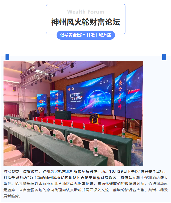 【盤錦站】“倡導安全出行,打造千城萬店”神州風火輪智能防扎自修復輪胎財富論壇